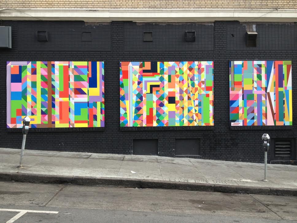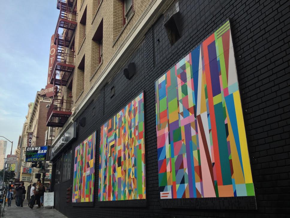 Xara Thustra Queer Trans Spaces 9’ x 30’ Latex on wood panel 2015 (mural on the east side of Jones st between Ellis and Eddy)