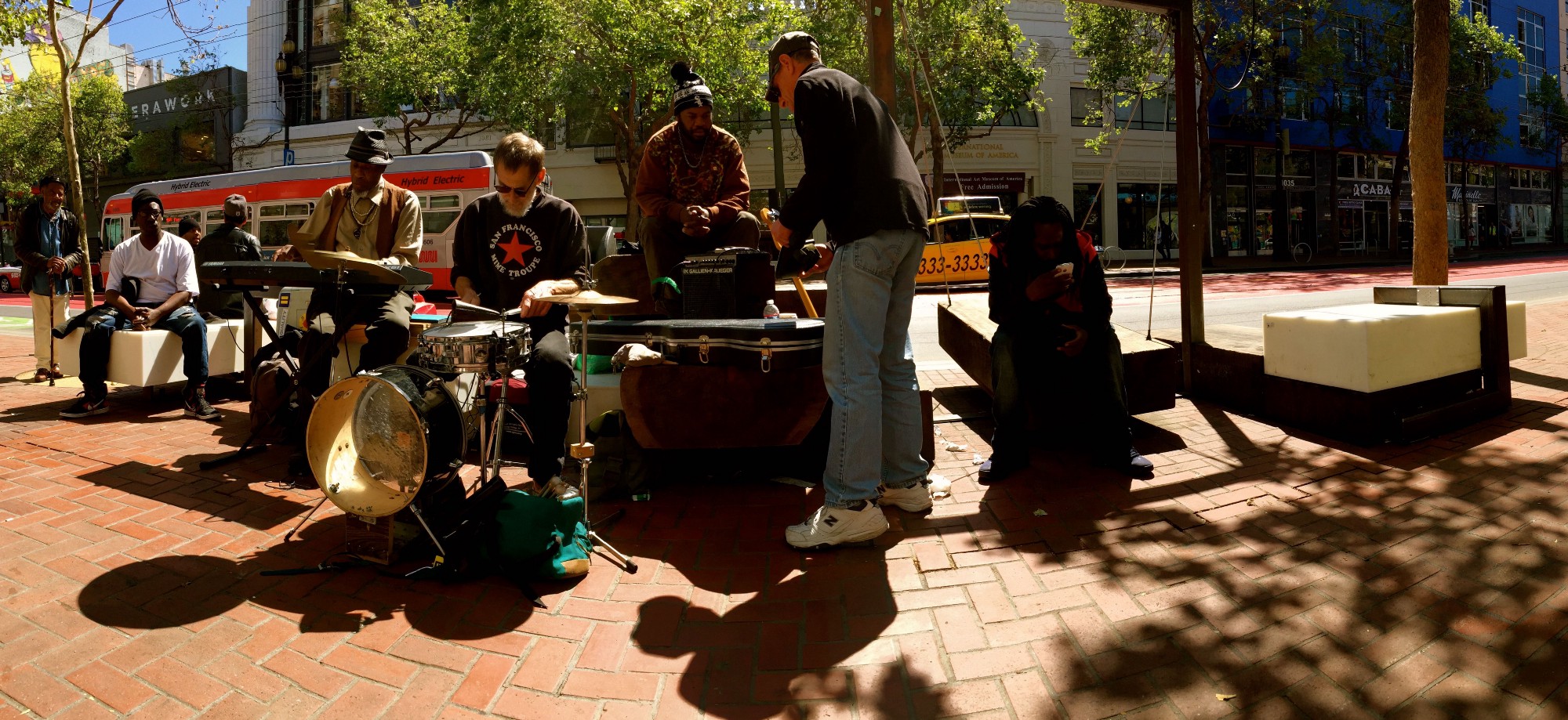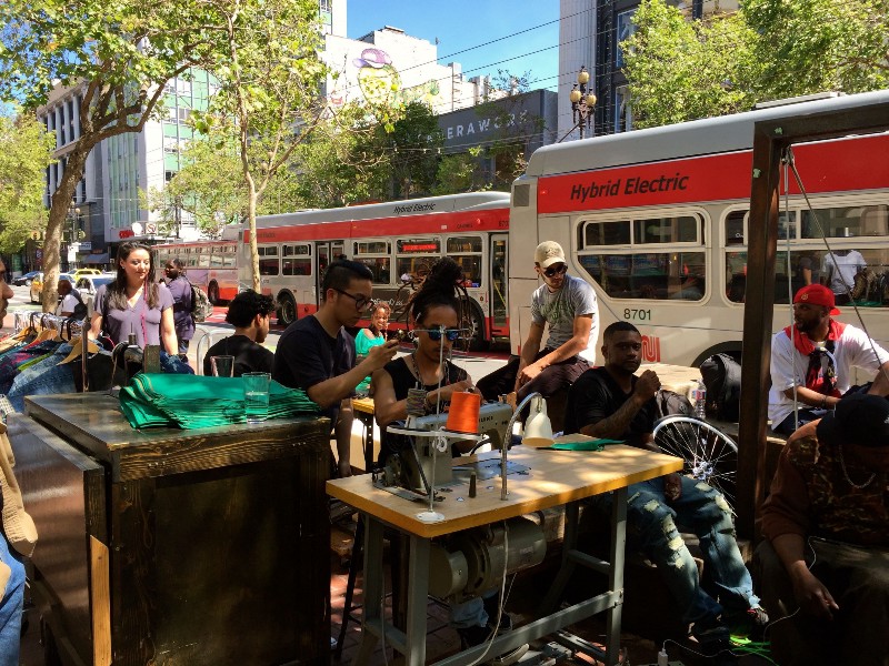 “Block by Block” was taken up by a group who stayed all day and played music into the night. Some were allegedly selling drugs and making passersby feel unwelcome, and in at least two cases, attacks were reported at the installation. The Luggage Store started hearing complaints from merchants, the city, and people living nearby. In a country where issues of class and race are at a boiling point, “Block by Block” plunked those tensions right into the heart of San Francisco’s polarizing economic boom.