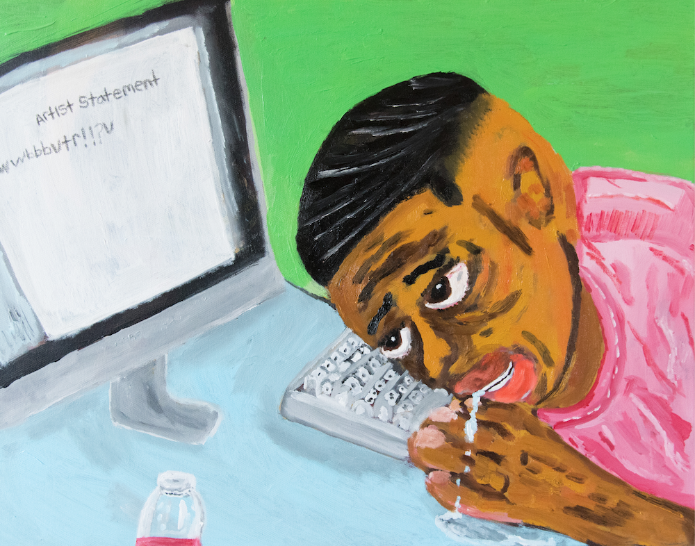 My practice consists of two-dimensional and three-dimensional. I produce acrylic and oil paintings, also clay sculptures. My work is inspired by the neighborhoods and culture I grew up in. That being the Cedar Hill and the South Dallas County area, and the lifestyles of those neighborhoods. Taking references from the fashion and hairstyles, slang, music, heroes, and everyday events, then re-imagine them into colorful paintings and sculptures. Some of my references come from biblical stories, inside jokes, African American history and literature. My goal is to create visual stories from my perspective in a way that can be identified by those within my culture. Also to change the negative connotation that may be associated by some people that see the culture (slang, sagging pants, rap music, etc) from the outside. Through these artworks I want to create realistic and surrealistic imagery to show the feeling of belonging and not belonging. I want to show a more playful side of African American males that is not normally portrayed by the media, by creating bright, colorful, fun paintings.